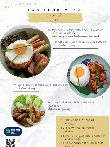 Nestled in the lush nature of Luang Prabang, KuangSi Kitchen invites you to experience the soul of Laos through its cuisine. Our menu honors family recipes passed down through generations, locally sourced ingredients, and bold, authentic flavors that tell the story of the land.